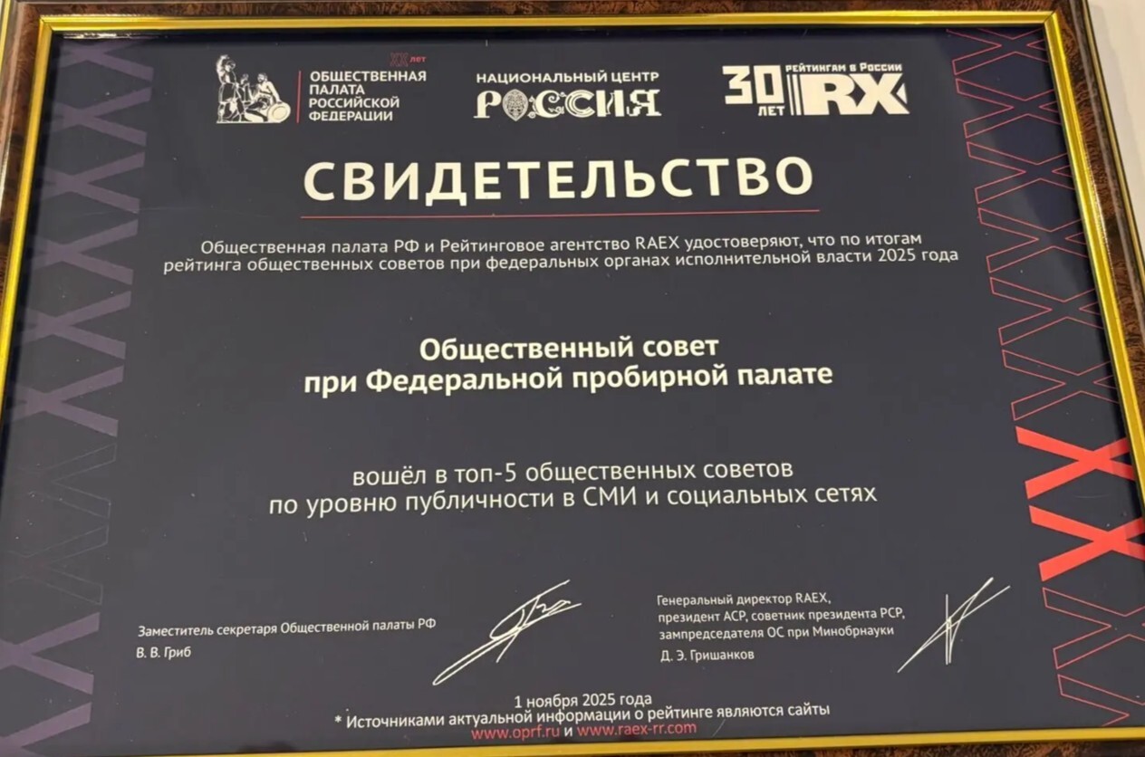 Общественный совет при Федеральной пробирной палате был признан одним из самых открытых и активных в стране.